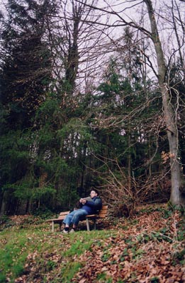 我們原打算上雪山看風景,可惜那天風大,登山吊車暫停服務,便改到半山的樹林走走。小克、德和我後來停下來寫生。開始天氣還好,愈來愈冷,開始下微雨。