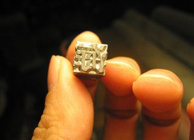 (左面照片的鉛字粒則是喬偉送贈之台灣產品。)